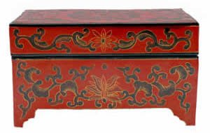 - Ming Dynasty Design Red Lacquered Box w/ Black Lacquered Interior