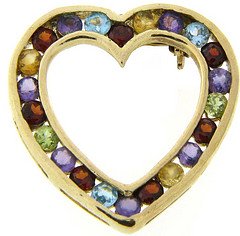 For the past 20 years we at Leah Hannah have been offering only the finest jewelry coupled with the highest standards in quality, service, and selection. We take great pride in our customer satisfaction, in fact we guarantee it. We offer a 30 day money back guarantee, so much for quality assurance. Our extensive collection includes diamond, gemstone, semi precious stone, CZ, Marcasite and pearl jewelry all with the highest quality sterling silver settings. From formal to casual from contemporary to timeless we've got what you're looking for, and all at the lowest prices in the industry. So if you're looking for that special gift for a special someone, or perhaps just for some self indulgence, you've come to the right place.Sterling Silver Gold Plated Genuine Multi Gemstone Heart Brooch